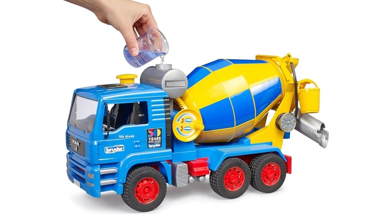 Η περιστρεφόμενη δεξαμενή με ενσωματωμένη έλικα ανάμειξης λειτουργεί με μανιβέλα, προσφέροντας αληθινή εμπειρία ανάμειξης. Η αναδιπλούμενη χοάνη εκφόρτωσης κάνει τη διαδικασία ρίψης του “τσιμέντου” εύκολη και διασκεδαστική.