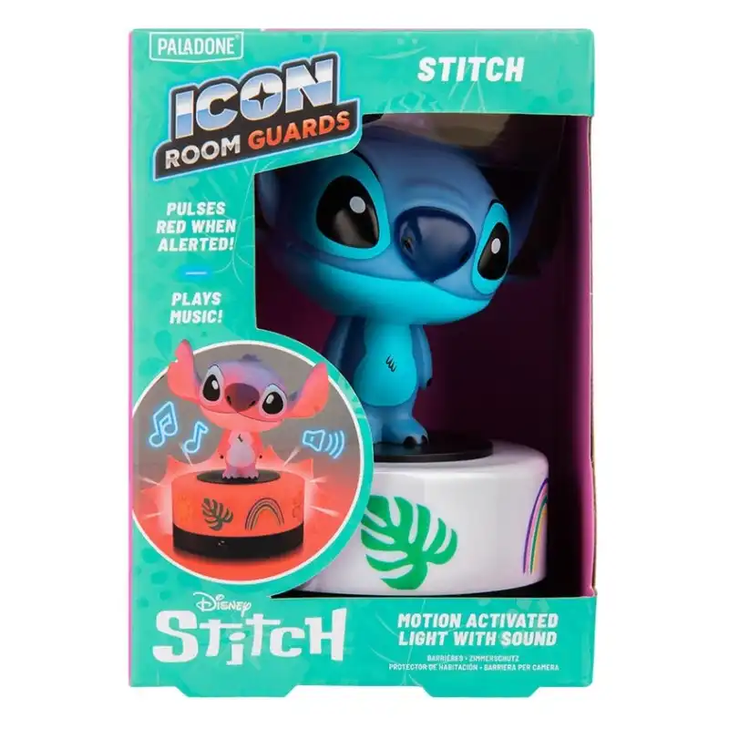 Your favourite character is here to protect your room with the Stitch Room Guard. Featuring motion-activated room guard and night light modes, keep intruders out of your bedroom.